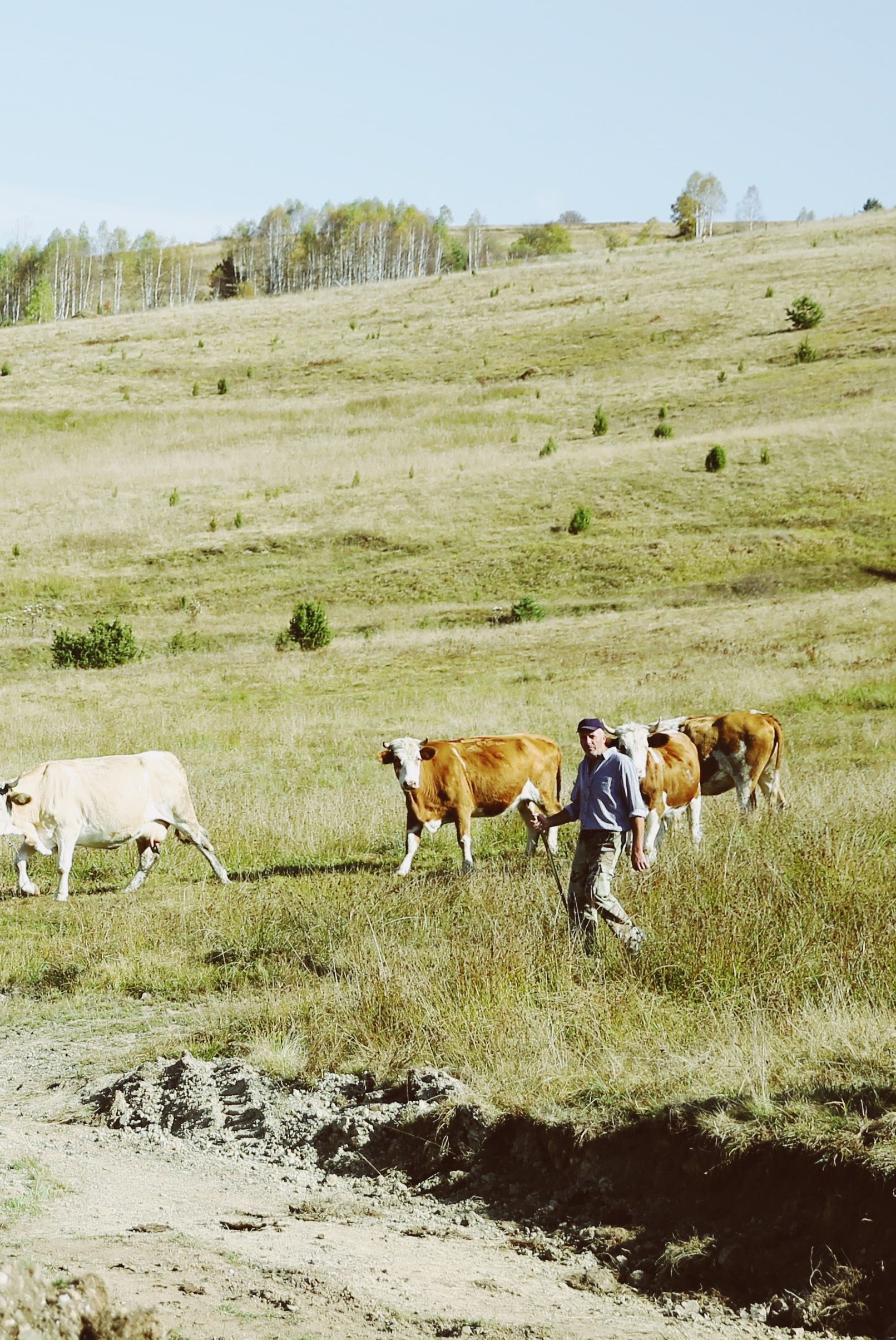十几公里的路,我们谨小慎微地开了一个半小时。路上只遇见了两个人,一位边走边织毛衣的老太太,一位手握长杆放牛的老爷爷。也许全世界都一样吧,人生代代,不断从乡村出走,留下老人继续守着终将荒废的土地。