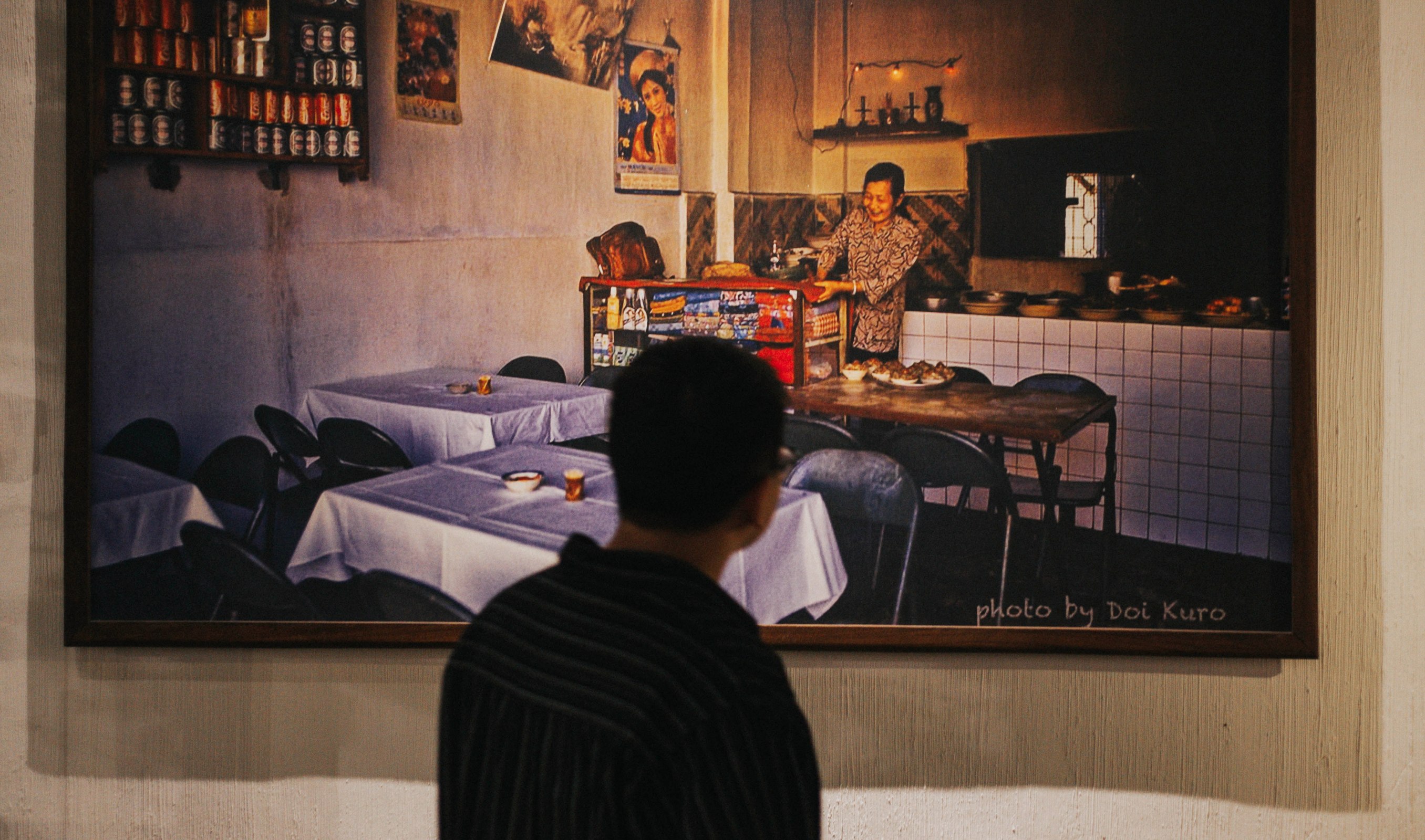 这是一个中年人,听口音是河北沧县人,沧县是我的老家,一听就能听得出来,便感到有些亲切。我在马路这边就看见了他,穿着一件枣红色的羽绒服,在便道隔离的栏杆前,他正在弯腰收拾地上摆着的东西。长长一溜儿的便道上,硕果仅存只剩下他一个人,显得格外醒目。在街这边看,他的身前是一座绿色的报刊零售亭,早已经挂上了门板,但绿色的亭子和他身后白色的栏杆,街树的枯枝,市场灰色的外墙,颜色艳丽的广告牌,这些静物和他组合在一起,构成了一幅画。如果作为新年画,怪有意思的。